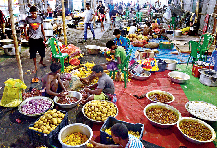 আলিপুরের ‘উত্তীর্ণ’ স্টেডিয়ামে চলছে রান্নার তোড়জোড়। শুক্রবার।ছবি: শৌভিক দে