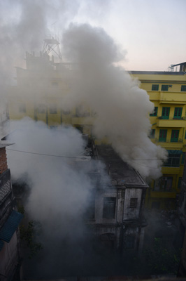 পুলিশ জানায়, কিছু ক্ষণের মধ্যে দমকলের তিনটি ইঞ্জিন ঘটনাস্থলে পৌঁছয়। দমকলের কর্মীরা চার তলায় উঠে দেখেন ধোঁয়া বার হচ্ছে চার তলার ডান দিকের একটি অংশ থেকে। স্থানীয় কয়েকজন দোকান মালিক পুলিশকে জানান, যে ঘর থেকে ধোঁয়া বার হচ্ছে সেটি বেসরকারি একটি সংস্থার যন্ত্রাংশ রাখার গুদাম। গুদামের দরজা ভেঙে সেখানে জল ঢালতে শুরু করেন দমকলের কর্মীরা। সিইএসসি-র লোকজন তার আগেই অবশ্য ওই বাড়ির বিদ্যুৎ সংযোগ কেটে দেন।