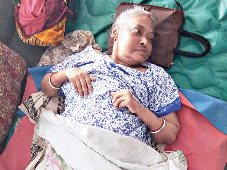 আতঙ্কিত দীপালি নন্দী। বুধবার, গাঙ্গুলিবাগানের আবাসনে। নিজস্ব চিত্র