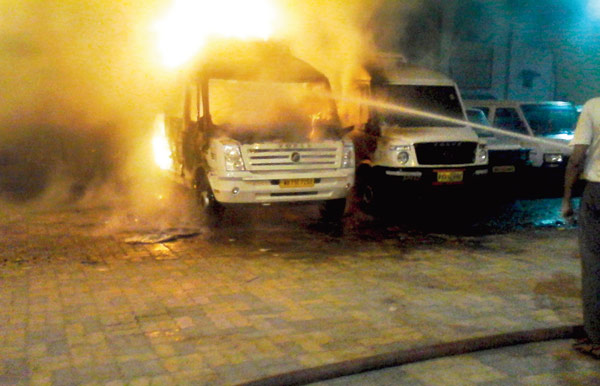 বুধবার নবান্নের সামনে বাসের পার্কিংয়ে দু’টি বাসে হঠাৎ আগুন লেগে যায়। দমকলের দু’টি ইঞ্জিন গিয়ে আগুন নেভায়।
