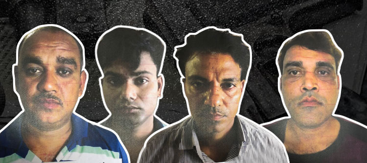 অস্ত্রপাচার কাণ্ডে ধৃতেরা। বাঁ দিক থেকে অজয়কুমার পাণ্ডে, উমেশ রায়, জয়শঙ্কর পাণ্ডে এবং কার্তিক সাউ।—নিজস্ব চিত্র।