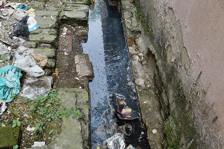 রয়েছে খোলা নর্দমাও। ছবি: সুদীপ্ত ভৌমিক