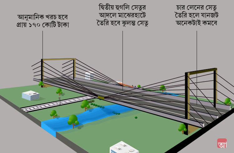 শুধু অনুমোদনের অপেক্ষা। দ্বিতীয় হুগলি সেতুর মতো মাঝেরহাটেও হবে ঝুলন্ত সেতু। পঞ্জাবের একটি সংস্থা এই সেতুর নকশা তৈরি করছে। সেই নকশা রেল এবং রাজ্য অনুমোদন করলেই কাজ শুরু হয়ে যাবে।