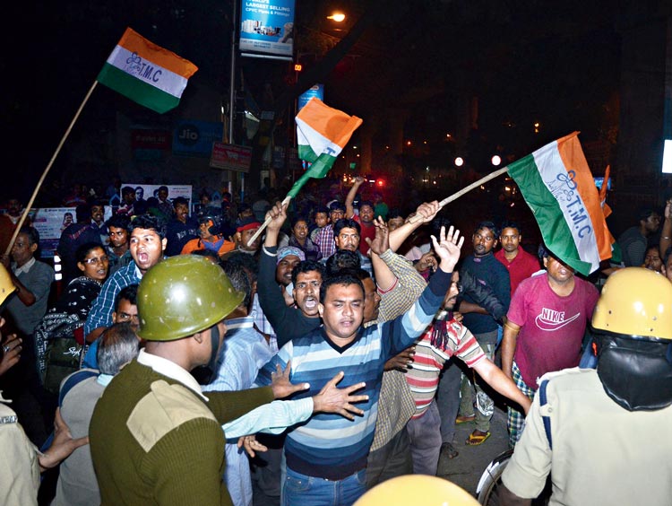স্থানীয় সূত্রে খবর, মঙ্গলবার রাত ৯টা থেকে একের পর এক পুলিশের গাড়ি জড়ো হয় করুণাময়ীতে। বিধাননগরের গোয়েন্দাপ্রধান শবরী রাজকুমারের নেতৃত্বে পুলিশ রাস্তার ধার থেকে লোক সরাতে শুরু করে। করুণাময়ী মোড়ের একাংশের আলো নিভিয়ে, গাড়িগুলিকে ঘুরিয়ে দেওয়া হয়। শুরু হয় দোকান ভাঙা। সেই তালিকায় বেনফিশের দোকান, ওয়ার্ড অফিস সবই ছিল। প্রতিবাদে তৃণমূলের পতাকা নিয়ে জড়ো হন হকার ও স্থায়ী দোকানদারেরা। তবে বিশাল পুলিশ বাহিনীর কাছে প্রতিবাদ স্থায়ী হয়নি। কয়েক জন দোকানদারকে আটকও করা হয়।
