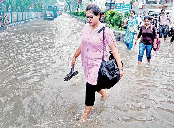 দু’পাশের খাল টইটম্বুর। একমাত্র ড্রেনেজ পাম্পিং স্টেশনেরও বেহাল দশা। ফলে আশঙ্কা সত্যি প্রমাণ করে ফের ভাসল সল্টলেক এবং পাঁচ নম্বর সেক্টর। প্রতি বারের মতোই রাজারহাটের বিভিন্ন এলাকা জলমগ্ন হল। দু’টি বস্তি এলাকায় ঘর ছাড়াও হতে হল বাসিন্দাদের।