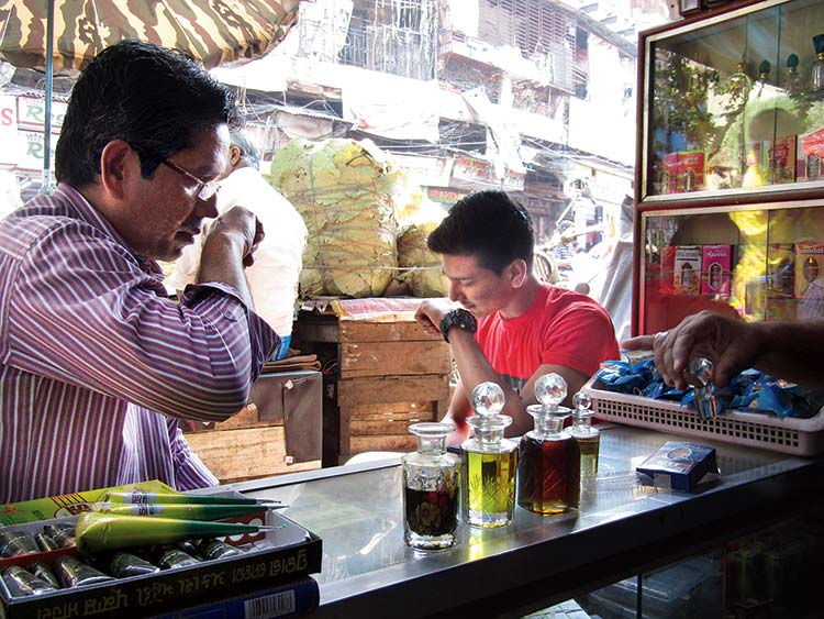 পরখ: হাতে ছুঁইয়ে গন্ধের যাচাই। —নিজস্ব চিত্র।