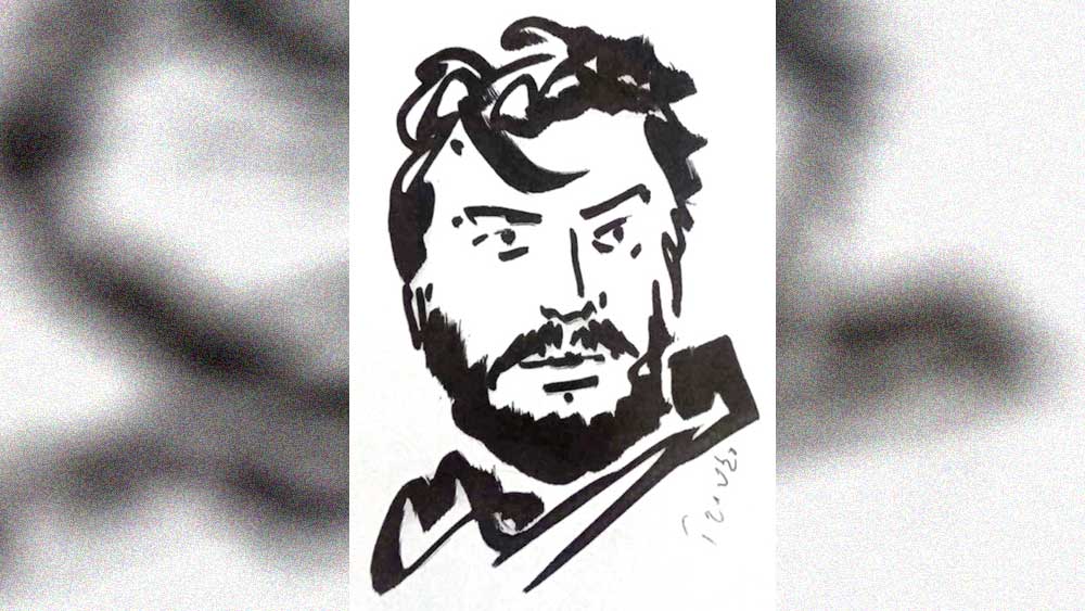 বীরভূমে গণদেবতা-র শুটিং। উপন্যাসে ছিরু পাল গোটা গ্রাম জ্বালিয়ে দিয়েছে, সেই দৃশ্য ক্যামেরায় তুলতে গিয়ে সমস্যা। ছবির সেট তো জ্বালিয়ে দেওয়া যায় না, কাঠামো বেরিয়ে পড়বে। শেষে কাঁকসার জঙ্গলে এক জনজাতি গ্রামের খোঁজ মিলল, সে গ্রামের সব মানুষ অন্যত্র চলে গেছেন, রয়ে গেছে তাঁদের পরিত্যক্ত ভাঙাচোরা বাড়িঘর। মাওবাদীদের যাতায়াত থাকায় তখন বেলা তিনটের পরেই পথঘাট জনশূন্য। ইউনিটের যে কর্মীরা জায়গাটাকে শুটিংযোগ্য করে তুলতে ওখানে থেকে গিয়েছিলেন, তাঁদের রসদ পৌঁছতে সন্ধেয় মূল রাস্তায় গাড়ি রেখে জঙ্গলের মধ্যে কয়েক কিলোমিটার পথ হেঁটে যেতে হত। বিপদ জেনেও এক সন্ধেয় জোর করে সে পথে পরিচালকের সঙ্গী হয়েছিলেন সৌমিত্র চট্টোপাধ্যায়। অন্ধকার বনপথে যেতে ভরসা টর্চের আলো, সে ভাবেই পৌঁছে কর্মীদের হাতে চা খেতে খেতে সবাইকে গান শুনিয়েছিলেন তিনি— স্মৃতিমেদুর তরুণ মজুমদার। ২০ ডিসেম্বর জ্ঞান মঞ্চে হয়ে গেল ‘অপরাজিত সৌমিত্র স্মরণ সন্ধ্যা’, বুদ্ধদেব দাশগুপ্তের সঙ্গে সভার আহ্বায়ক ছিলেন তরুণবাবু। বললেন পবিত্র সরকার, বাদল দাস, অনীক দত্ত, পর্দায় ফুটে উঠল বিভাস চক্রবর্তী, পরাণ বন্দ্যোপাধ্যায়, বিপ্লব চট্টোপাধ্যায়, গৌতম ঘোষ, মমতাশংকর, ঋতুপর্ণা সেনগুপ্তের শ্রদ্ধার্ঘ্য। ছিলেন পৌলমী বসু ও সৌগত চট্টোপাধ্যায়, শেষে ‘স্মরণীয় অভিনেতা, কবি ও সংস্কৃতি-নায়ক’ সৌমিত্র-স্মরণে দেবজ্যোতি মিশ্রের নির্দেশনায় বিশিষ্ট শিল্পীদের সঙ্গীতার্ঘ্য। ছবি আমন্ত্রণপত্র থেকে, শিল্পী হিরণ মিত্রের স্কেচে সৌমিত্র চট্টোপাধ্যায়।