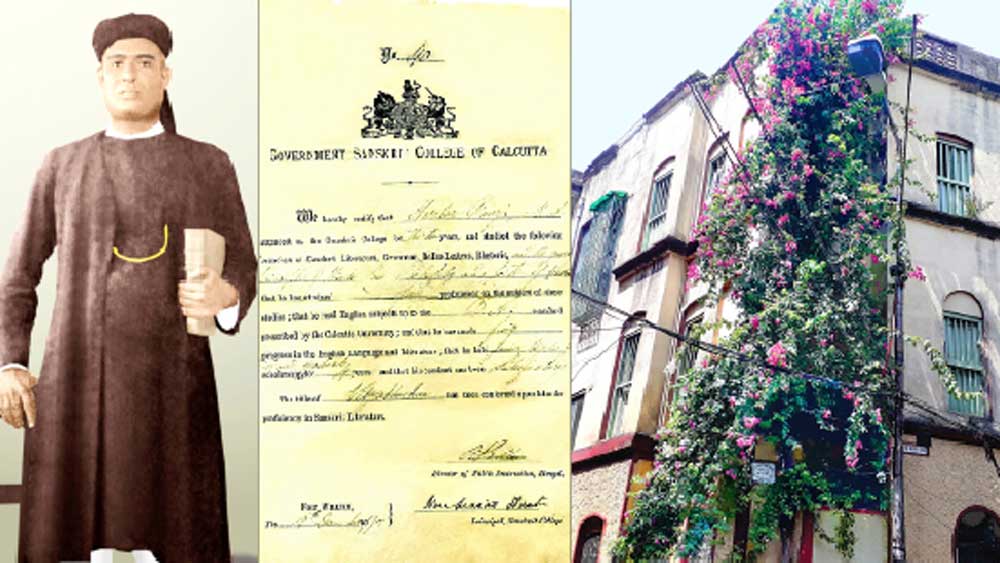 ১৮৭৫ সালের ৭ ডিসেম্বর জন্ম হরিহর বিদ্যাভূষণের। পঁচিশ বছর বয়সে কলিকাতা বিশ্ববিদ্যালয় থেকে সংস্কৃতে এম এ পরীক্ষায় প্রথম স্থান অধিকার করে পেয়েছিলেন ‘শাস্ত্রী’ উপাধি। ১৯০১ সালে সংস্কৃত কলেজের তৎকালীন অধ্যক্ষ, পণ্ডিত হরপ্রসাদ শাস্ত্রীর কাছ থেকে ‘বিদ্যাভূষণ’ উপাধি লাভ (মাঝের ছবিতে হরপ্রসাদ-স্বাক্ষরিত শংসাপত্র)। যোগ দেন রাজশাহী কলেজে। হেয়ার স্কুলের হেড পণ্ডিত ছিলেন, ১৯০৭ সালে প্রেসিডেন্সি কলেজে অধ্যাপনা শুরু করেন হরিহর বিদ্যাভূষণ। দীর্ঘ কর্মজীবন শেষে অবসর ১৯৩৩ সালে, তখন তিনি একই সঙ্গে সংস্কৃত, পালি ও বাংলার বিভাগীয় প্রধান! হরিহর বিদ্যাভূষণের লেখা সংস্কৃত শিক্ষা, সংস্কৃত পাঠ ও এলিমেন্টস অব স্যানস্ক্রিট গ্রামার অ্যান্ড কম্পোজ়িশন বইগুলি সে কালে পাঠ্যপুস্তক হিসেবে অনুমোদন পেয়েছিল। ‘কলিকাতা পণ্ডিত সভা’-র সভাপতি হরিহর বিদ্যাভূষণ বিশ শতকের কলকাতায় সংস্কৃত চর্চার প্রসারে ব্রতী হন। সুভাষচন্দ্র বসু, শ্যামাপ্রসাদ মুখোপাধ্যায়, সুনীতিকুমার চট্টোপাধ্যায়, পশুপতিনাথ শাস্ত্রী, গৌরীনাথ শাস্ত্রী, শ্রীজীব ন্যায়তীর্থ, জ্ঞানপ্রকাশ ঘোষ, জ্যোতীন্দ্রবিমল চৌধুরী, বিচারপতি অজিত নাথ রায় প্রমুখ তাঁর ছাত্র। অনেকেই এসেছেন এ বাড়িতে। এসেছেন সীতারামদাস ওঙ্কারনাথও।