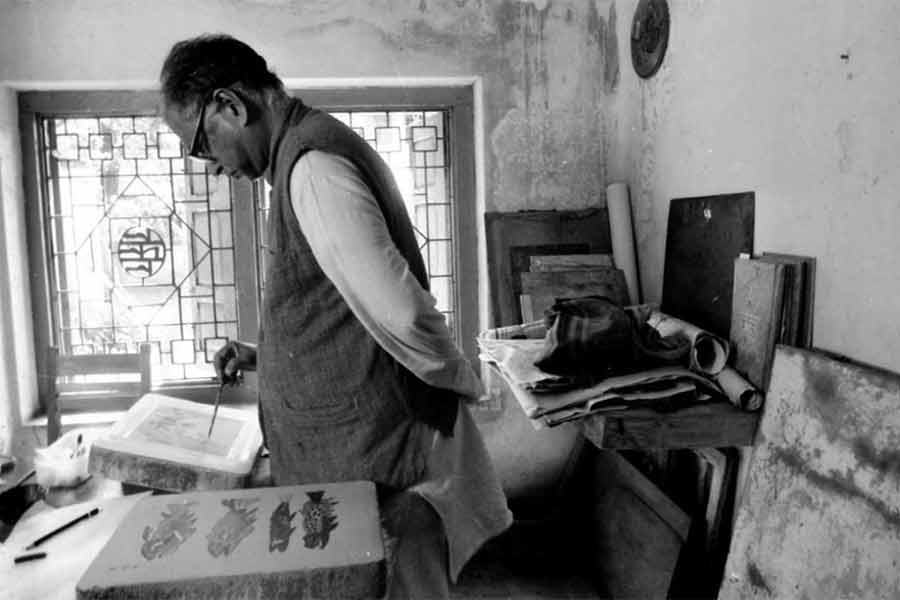 ছবির জগৎ এক নিস্তব্ধতার জগৎ, এগজ়িবিশনে টাঙানো ছবি কখনও বলে না: আমাকে দেখে যাও। অথচ তার সামনে গিয়ে দাঁড়ানো দর্শককে সে নাড়িয়ে দিতে পারে, নিয়ে যেতে পারে অন্য জগতে— এক সাক্ষাৎকারে বলেছিলেন কে জি সুব্রহ্মণ্যন। ভারতীয় চিত্রকলার অন্যতম এই পথিকৃৎ, বাংলার আপনজন ‘মানিদা’র জন্মশতবর্ষ এ বছর। তারই উদ্যাপন হয়ে গেল গত ১৩ ফেব্রুয়ারি গ্যালারি চারুবাসনার উপেন্দ্রকিশোর সভাঘরে। শিল্পীর এক ভিডিয়ো-সাক্ষাৎকারের রেকর্ডিং দেখানো হল, ২০১৬-র ফেব্রুয়ারির গোড়ার দিকে যেটি নিয়েছিলেন অরিজিৎ মৈত্র। স্মৃতিচারণে তাঁর প্রিয় মানিদাকে শ্রদ্ধা জানান যোগেন চৌধুরী, শিল্পীকে নিয়ে বললেন নন্দিনী ঘোষ এবং আর শিবকুমার। ছবিতে শান্তিনিকেতনের বাড়িতে কর্মমগ্ন কে জি সুব্রহ্মণ্যন।