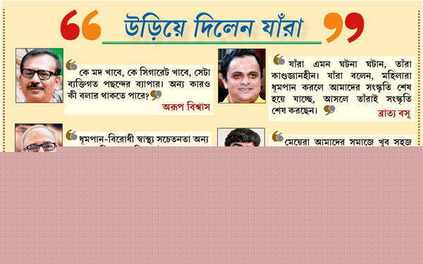 ঘটনাস্থল যে বিধানসভা কেন্দ্রের মধ্যে, সেই টালিগঞ্জের প্রার্থী অরূপ বিশ্বাস টলিউডের ‘নিয়ন্ত্রক’ বলে পরিচিত। টলিউডের কয়েক জন অভিনেত্রীও ধূমপান করেন। এ দিন অরূপ বলেছেন, ‘‘ঘটনার সঙ্গে রাজনীতির কোনও সম্পর্ক নেই। এক ব্যক্তি ও তাঁর ছেলে এক তরুণীর সিগারেট খাওয়া নিয়ে আপত্তি তোলেন। কিন্তু মদ, সিগারেট খাওয়া ব্যক্তিগত পছন্দের ব্যাপার। যা-ই হোক, আমার দলের যোগ নেই।’’