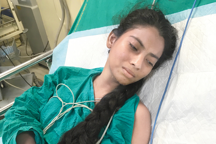 রবিবার হাসপাতালে মনীষা (ডান দিকে)। ছবি: নিজস্ব চিত্র ও নীলোৎপল বিশ্বাস