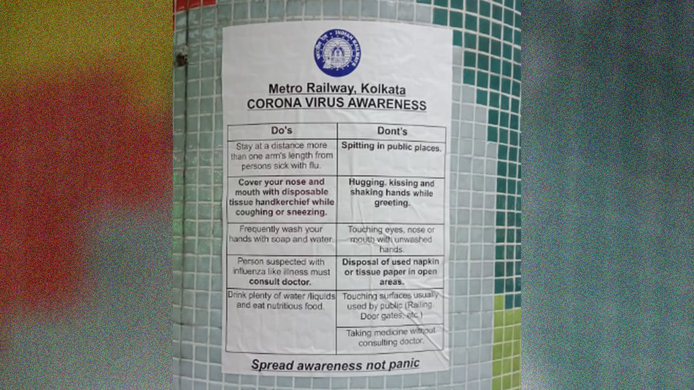 মেট্রোতে যাতায়াতের সময়, যাতে কোনও ভাবে করোনার সংক্রমণ না ছড়িয়ে পড়ে, আগে থেকে যাতে যাত্রীদের সচেতন করা যায়, সে কারণে এই উদ্যোগ বলে মনে করা হচ্ছে। সেখানে বলা হচ্ছে, পৃথিবীর বহু দেশে করোনাভাইরাস ছড়িয়ে পড়েছে। অযথা চিন্তা করবেন না। তাই সতর্ক থাকুন। এই বিষয়গুলি মনে রাখুন। তাতে বলা হচ্ছে, কাশি বা হাঁচির সময় রুমাল দিয়ে মুখ ঢাকুন। সাবান বা জল দিয়ে হাত ধুয়ে নিন। ভিড়ে যাবেন না। জ্বরের সংক্রমিত ব্যক্তির থেকে এক হাত দূরে থাকুন। ডাক্তারের পরামর্শ অবশ্যই নিন। কারও সঙ্গে সাক্ষাতের সময় হাত মেলাবেন না। আলিঙ্গন করবেন না অথবা চুম্বন করবেন না।