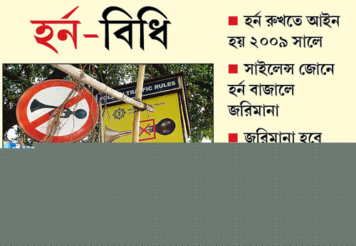 পুরসভার একটা ফাটা পোস্টারের নীচে ঢাকা পড়েছে, ‘নো হর্ন’ চিহ্ন। সামনেই বিকট হর্ন বাজিয়ে হু-হু করে ছুটছে দামাল বাইক। হাসপাতালে ঢোকার মুখে রোগীসুদ্ধ গাড়িও তাতে ভ্যাবাচাকা। মঙ্গলবার ভরদুপুরের কলকাতাতেই এ দৃশ্য দেখা গেল।