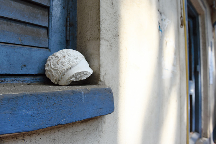 ভগ্নাংশ: বিদ্যাসাগর কলেজ চত্বরে পড়ে রয়েছে ভাঙা মূর্তির একাংশ। বুধবার। নিজস্ব চিত্র