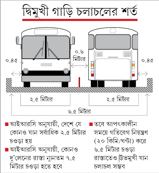সেতু বিশেষজ্ঞ বিশ্বজিৎ সোম বলছেন, ‘‘ঘণ্টায় ২০ কিলোমিটার বেগে গাড়ি চললে অবশ্যই ওই উড়ালপুল দিয়ে দ্বিমুখী গাড়ি চলাচল সম্ভব। সে ক্ষেত্রে গতি নিয়ন্ত্রণের বিষয়টি পুলিশকেই দেখতে হবে। আর মাঝপথে কোনও গাড়ির ব্রেক ডাউন হলে সমস্যা মেটাতে সেতুর উভয় দিকেই না-হয় ক্রেন রাখার ব্যবস্থা করা হোক।’’ আর এক সেতু বিশেষজ্ঞের আবার প্রশ্ন, ‘‘যদি ওইটুকু যাত্রাপথে ২০ কিলোমিটারের কম গতিতেও গাড়ি চলে, তাতে অসুবিধা কোথায়? মাত্র কয়েক মিনিটের ব্যাপার। স্থির হয়ে দাঁড়িয়ে থাকার চেয়ে তো ধীর গতিতে এগোনো অনেক ভাল।’’