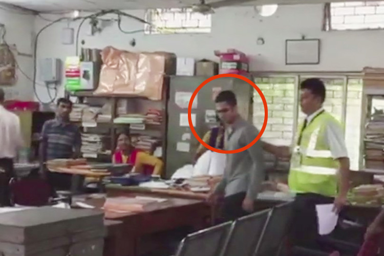 বিমানবন্দর কর্তৃপক্ষ জিজ্ঞাসাবাদ করছেন আটক যুবককে।—নিজস্ব চিত্র।