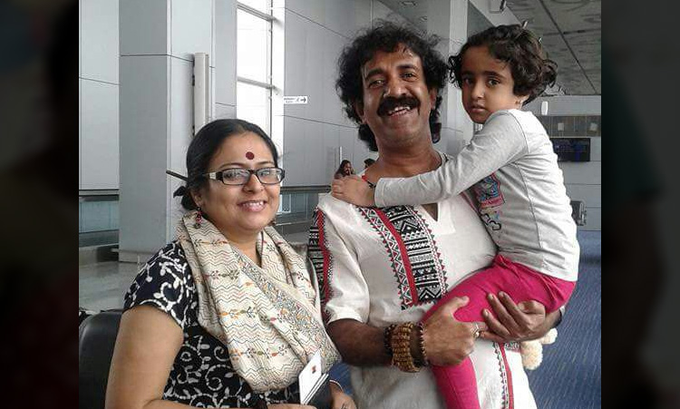 ২০১৬। বাংলাদেশ যাওয়ার পথে মেয়েকে নিয়ে কালিকাপ্রসাদ এবং ঋতচেতা। ছবি: ঋতচেতার ফেসবুকের সৌজন্যে।