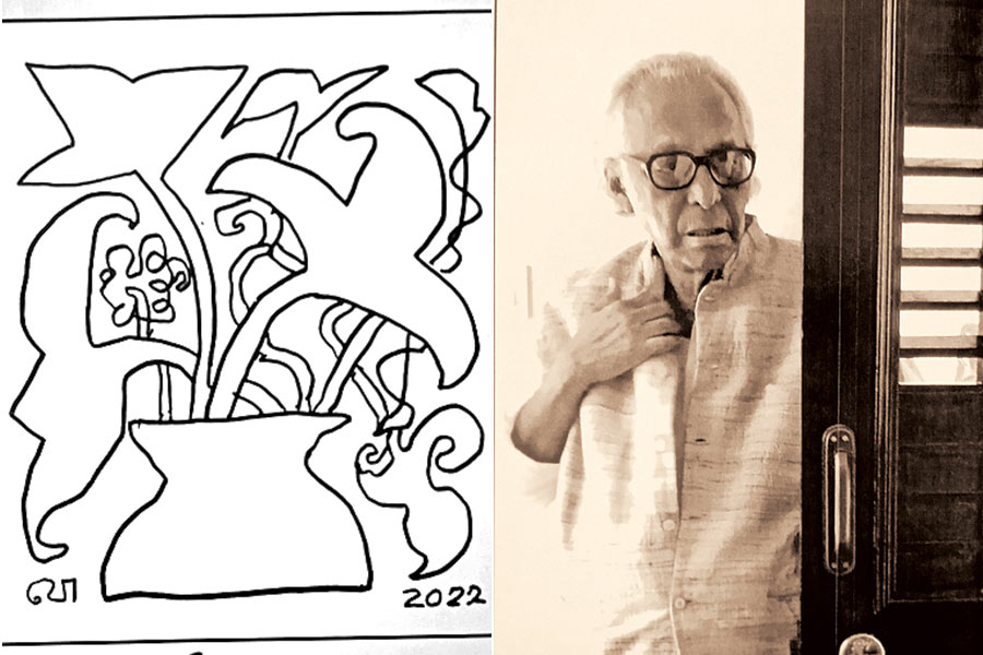 যোগেন চৌধুরীর শিল্পকর্ম নিয়ে মুগ্ধতা জানাচ্ছিলেন শর্মিলা ঠাকুর, ২৩ ডিসেম্বর সন্ধ্যায়, চারুবাসনা গ্যালারিতে। একটি টেবিল ক্যালেন্ডার প্রকাশ করলেন তিনি সেখানে, শিল্পীর বিভিন্ন মুহূর্তের ছবি তুলেছেন অরিজিৎ মৈত্র— তপন সিংহ ফাউন্ডেশন-এর তত্ত্বাবধায়ক। ২০০৮-এ তপনবাবুর জীবৎকালেই শুরু হয় এই ফাউন্ডেশন, চলচ্চিত্র নাটক শিল্পকলা সঙ্গীত নিয়ে কর্মশালা ও চর্চার আয়োজনে মগ্ন, গত কয়েক বছরে প্রকাশ করেছে শঙ্খ ঘোষ উস্তাদ আলি আকবর খান ও সৌমিত্র চট্টোপাধ্যায়ের ছবি দিয়ে ক্যালেন্ডারও। একই সন্ধ্যায় ওই সংস্থার আরও একটি টেবিল ক্যালেন্ডারের উদ্বোধন করলেন শর্মিলা, মৃণাল সেনের আসন্ন শতবর্ষ উপলক্ষে, তাতে চলচ্চিত্রকারের মগ্ন মননের নানা মুহূর্ত (ডান দিকের ছবি) ক্যামেরায় ধরেছেন প্রতাপ দাশগুপ্ত। মৃণালবাবুর ফিল্মগুলির যথাযোগ্য রেস্টোরেশন ও প্রদর্শনের কথা মনে করিয়ে দিলেন শর্মিলা ঠাকুর। ছবিতে বাঁ দিকে যোগেন চৌধুরীর চিত্রকৃতি, ক্যালেন্ডার থেকে।