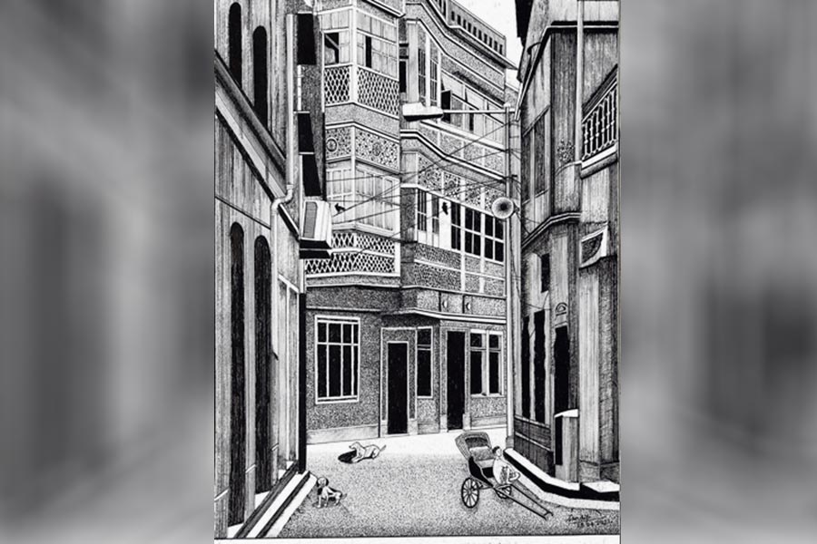 গ্রীষ্মের দুপুরে ঝিমোচ্ছে উত্তর কলকাতা। গলির মোড়ে তেমাথায় বিশ্রামরত টানা-রিকশাচালক, পথের নেড়ি, দু’পাশের ঘেঁষাঘেঁষি বাড়ি, তার দেওয়াল আর বারান্দার জাফরি-ঘুলঘুলি, মাথার উপরের তারগুলোও (সঙ্গের ছবি)। এই চিরাচরিত, আবহমানই তো ঐতিহ্য, ‘পেন অ্যান্ড ইঙ্ক’ মাধ্যমে তাকেই ধরে রাখেন সন্দীপ চট্টোপাধ্যায়। জার্মানির মিউনিখ থেকে পেপার টেকনোলজির পাঠ, পেশায় ছিলেন ইঞ্জিনিয়ার। নেশা কিন্তু পেন অ্যান্ড ইঙ্ক-এ ছবি আঁকা, এবং শুধু তাকেই আঁকা যা ‘হেরিটেজ’। এই ধারাতেই তিনি এঁকেছেন হাম্পি-পুরী-কোনার্ক-মহাবলীপুরমের মন্দির, রাজস্থানের কেল্লা, ত্রিপুরার প্রাসাদ, অজন্তার গুহাচিত্র-সহ প্রাচীন ভারতের শৈল্পিক বিস্ময়গুলিকে। তাঁর ছবির প্রদর্শনী হয়েছে ইংল্যান্ডের সাসেক্স থেকে কলকাতার রামকৃষ্ণ মিশন ইনস্টিটিউট অব কালচার গোলপার্ক, আইসিসিআর-এও। এ বার ‘ফ্রিউইংস’-এর উদ্যোগে তাঁর প্রদর্শনী ‘হেরিটেজ অব ইন্ডিয়া’-র উদ্বোধন ২৩ জানুয়ারি বিকেল ৫টায় অ্যাকাডেমি অব ফাইন আর্টসে— ২৯ জানুয়ারি পর্যন্ত, দুপুর ১২টা থেকে রাত ৮টা।