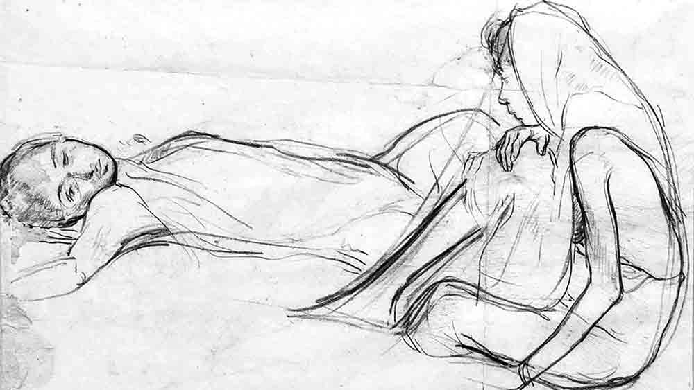 ২৫ মে পেরিয়ে গেল, রামকিঙ্কর বেইজের জন্মদিন। সোমনাথ হোর তাঁর এক রচনায় প্রস্তাব করেছিলেন, শান্তিনিকেতন নন্দন মেলার সঙ্গে যুক্ত হোক রামকিঙ্কর ও বিনোদবিহারীর নাম। তা হয়নি, কিন্তু ফার্ন রোডের দেবভাষা বই ও শিল্পের আবাসে প্রতি বছর ২৫ মে শুরু হওয়া প্রদর্শনীর শিরোনাম হয়ে উঠেছে ‘রামকিঙ্কর উৎসব’। চলছে এ বছরও, দেবভাষার পথ চলার এক দশক পূর্তিতে এ বার একক প্রদর্শনী— শিল্পী অতুল বসুর চিত্রকৃতি নিয়ে। প্রতিকৃতি চিত্রণে অনন্য তিনি, স্বতন্ত্র নিসর্গচিত্রে, দুর্ভিক্ষ ও মন্বন্তর নিয়ে ইতিহাস গড়েছেন বাংলার যে চিত্রশিল্পীরা, অতুল বসু তাঁদেরও অগ্রপথিক। প্রতিকৃতি, নিসর্গ বা দুর্ভিক্ষ-মন্বন্তরকে নিজের শিল্পকর্মশালায় কী ভাবে দেখেছিলেন, জীবনজোড়া সেই ‘স্টাডি’ই (নীচের ছবিতে একটি) বিষয় এই প্রদর্শনীর। শিরোনামও। কোনও কোনও চিত্রকৃতি পেরিয়েছে শতবর্ষও। জীবনশিল্পী শুধু দেখে চলেন, সেই ‘দেখা’তেই নিবেদিত এই আয়োজন। প্রদর্শনী চলবে ১২ জুন পর্যন্ত, মঙ্গলবার বাদে।