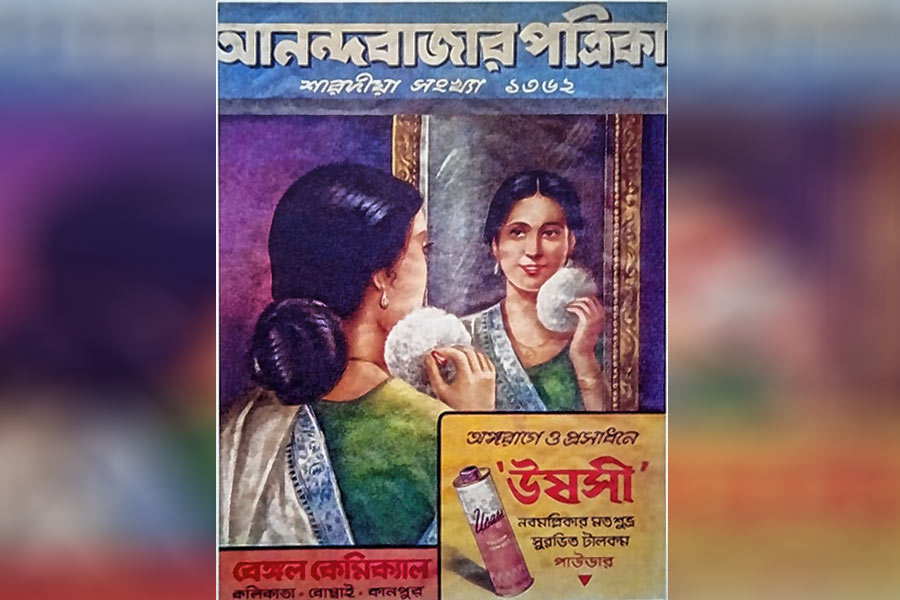 পুরনো খবরের কাগজ বা তার আর্কাইভ শুধুই কি সংবাদেরই মহামূল্যবান ভাণ্ডার? কতশত বিজ্ঞাপনেরও আকর তারা। তার অনেকগুলিই, সংস্থা বা প্রতিষ্ঠান সমেত মুছে গেছে আজ, কালের নিয়মে। হয়তো সেই পণ্যগুলিও সময় ও চাহিদা বদলের সঙ্গে রূপ পাল্টেছে, কিংবা স্রেফ নেই হয়ে গিয়েছে। পুরনো সংবাদপত্রের পাতায় তবু রয়ে যায় সেই সব ছবি আর কথা, রঙে অক্ষরে ফেলে আসা যুগের কথা বলে যায়। মনে রাখা দরকার, এই সব বিজ্ঞাপনের ছবি আঁকতেন সেই সময়ের নামী ও জনপ্রিয় শিল্পীরা, সেই নিরিখেও এই সব বিজ্ঞাপনচিত্রের গুরুত্ব কম নয়। সে কালের কলকাতার পুরনো বিজ্ঞাপনচিত্রের বিপুল সম্ভার থেকে বাছাই কয়েকটি নিয়ে সুস্মৃতি প্রকাশনী বার করেছে নতুন বাংলা বছরের অভিনব টেবিল ক্যালেন্ডার ‘রাঙা মাথায় চিরুনি’। স্নো, সাবান, নখরঞ্জনী, সিঁদুর, রুজ, কেশ তেল, পাউডার, সুগন্ধির বিজ্ঞাপনচিত্র— আনন্দবাজার পত্রিকা (ছবি), সচিত্র ভারত, প্রবাসী, দীপালী, ভারতবর্ষ, বসুমতী ইত্যাদি পত্রিকায় প্রকাশিত। বাংলা রঙিন বিজ্ঞাপনের এক টুকরো ইতিহাস— নজরকাড়া, সংগ্রহযোগ্য।