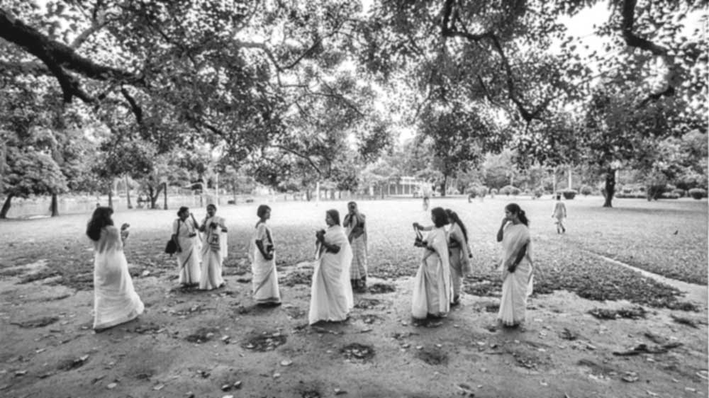 এই শহরের আনাচ-কানাচে এখনও যে আদরে সেজে ওঠে শিল্প-পরিসরের আশ্চর্য সব নিদর্শন, শহরবাসী কি খেয়াল রাখেন তার? বাংলাদেশের বিশ্রুত চিত্রসাংবাদিক ও সমাজকর্মী শহিদুল আলমের তোলা বাছাই ছবির প্রদর্শনী চলছে এমামি আর্ট-এ। চার দশকেরও বেশি শিল্পযাত্রার নানা বাঁকে স্রেফ ফোটোগ্রাফিই নয়, ইতিহাস, সংস্কৃতি, পরিবেশ, এবং সর্বোপরি স্বাধীন দেশে নাগরিকের অধিকার আন্দোলন— সব কিছুরই পরিবর্তনভাষ্য ধরেছেন এই শিল্পী। ইনা পুরির সযত্ন কিউরেশনে মধ্য-জুনে শুরু হওয়া এই প্রদর্শনী— সিঞ্জড বাট নট বার্নট— চোখ ও মনের ভাবনারসদ। দেখার সুযোগ এ মাসের ১৮ তারিখ অবধি, ইমামি আর্ট-এর ওয়েবসাইটে করা যাবে ‘ভার্চুয়াল’ সফরও। নীচের ছবিটি— অন্য চোখে দেখা— ১৯৯২ সালে ঢাকার প্রথম মেয়ে-ফোটোগ্রাফারদের ‘কালেক্টিভ’।