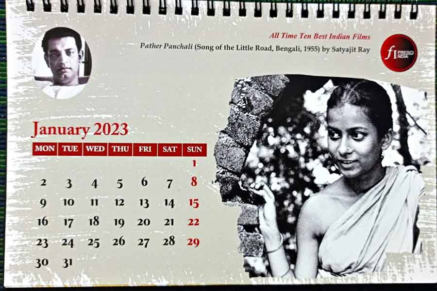 চলচ্চিত্র-সমালোচকদের আন্তর্জাতিক সংগঠনের ভারতীয় অংশ ‘ফিপরেস্কি-ইন্ডিয়া’-র সদস্যদের বাছাইয়ে গত অক্টোবরে প্রকাশ পেয়েছে সর্বকালের সেরা দশ ভারতীয় চলচ্চিত্রের তালিকা। প্রথম স্থানে পথের পাঁচালী। দ্বিতীয় ও তৃতীয় যথাক্রমে মেঘে ঢাকা তারা ও ভুবন সোম, চার থেকে দশে পর পর এলিপত্থয়ম, ঘটশ্রাদ্ধ, গরম হাওয়া, চারুলতা, অঙ্কুর, পিয়াসা, এবং শোলে! দশ চলচ্চিত্রের দশটি স্থিরচিত্র (সঙ্গের ছবিটি পথের পাঁচালী থেকে) নিয়ে ২০২৩-এর নতুন ডেস্ক ক্যালেন্ডার প্রকাশ করল ফিপরেস্কি-ইন্ডিয়া, সঙ্গে প্রথম ভারতীয় চলচ্চিত্র রাজা হরিশচন্দ্র ও প্রথম ভারতীয় সবাকচিত্র আলম আরা-রও দু’টি ছবি। কলকাতা আন্তর্জাতিক চলচ্চিত্রোৎসবে পাওয়া যাবে ফেডারেশন অব ফিল্ম সোসাইটিজ় অব ইন্ডিয়া-র স্টলে।