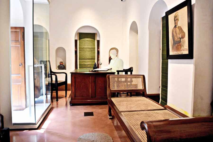 ১৮৯৮ সালের ২৮ জানুয়ারি কলকাতা পৌঁছলেন মার্গারেট এলিজ়াবেথ নোবল। ফেব্রুয়ারিতে প্রথম দক্ষিণেশ্বরে যাত্রা, ১১ মার্চ স্টার থিয়েটারে এক সভায় শহরের বিশিষ্টজনের সঙ্গে তাঁর পরিচয় করিয়ে দিলেন স্বামী বিবেকানন্দ, পরে সারদা দেবী-সকাশে, এবং ২৫ মার্চ দীক্ষা-শেষে নাম হল ‘নিবেদিতা’, এক মহাজীবনের যাত্রা শুরু। ভগিনী নিবেদিতার কলকাতা আগমনের ১২৫ বছরের লগ্ন সমাগত, তা-ই উদ্যাপন করল ‘রামকৃষ্ণ সারদা মিশন সিস্টার নিবেদিতা হেরিটেজ মিউজ়িয়ম অ্যান্ড নলেজ সেন্টার’, গতকাল ২৮ অক্টোবর মহীয়সীর জন্মদিনে, ফণীভূষণ বিদ্যাবিনোদ যাত্রামঞ্চে। ছিলেন ভারত সরকারের কয়লা মন্ত্রকের যুগ্মসচিব ও আর্থিক উপদেষ্টা নিরুপমা কোতরু, সারদা মঠ ও রামকৃষ্ণ সারদা মিশনের সহকারী সাধারণ সম্পাদক প্রব্রাজিকা জ্ঞানদাপ্রাণা, প্রব্রাজিকা ভাস্বরপ্রাণা, দেবাঞ্জন সেনগুপ্ত, নীলাঞ্জনা দাশগুপ্ত প্রমুখ। ছবিতে বোসপাড়া লেনে সংগ্রহশালায় নবরূপে সেজে ওঠা নিবেদিতার ঘর, ডেস্কে কর্মরত তিনি।