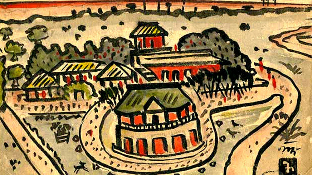 তাঁর অনন্য আঙ্গিকে ছবি আঁকতেন, স্কেচ করতেন নন্দলাল বসু, তেমনই আপনমনে শিল্পিত করে তুলতেন চিঠি লেখার পোস্টকার্ডকেও। চিত্রিত পোস্টকার্ড তাঁর সমসাময়িক অনেক শিল্পীরই কৃতি, শিল্পাচার্য নিঃসন্দেহে ছিলেন তাঁদের অগ্রগণ্য। তাঁর গাঁধীবাদী মনন, মানুষের শিল্পী হয়ে ওঠার রাজনৈতিক দর্শনের সঙ্গে মিলেমিশে গিয়ে রোজকার জীবনের অতি সুলভ ও সাধারণ এই জিনিসটি হয়ে উঠেছিল ললিত শিল্পবস্তু। অন্তরঙ্গ বন্ধু রমেশ চরণ বসু মজুমদারকে ১৯১৮-১৯৫৬ সময়কালে পাঠানো বহু চিত্রিত পোস্টকার্ডের সংগ্রহ সম্প্রতি উপহার হিসেবে পেয়েছে যদুনাথ ভবন মিউজ়িয়াম অ্যান্ড রিসোর্স সেন্টার, সেগুলির সঙ্গে ডিএজি মিউজ়িয়ামস ও ভিক্টোরিয়া মেমোরিয়ালের নিজস্ব সংগ্রহে থাকা অবনীন্দ্রনাথ ঠাকুর, যামিনী রায় ও অসিত হালদারের শৈল্পিক পোস্টকার্ড নিয়ে প্রদর্শনী ‘দি আর্ট অব দ্য পেইন্টেড পোস্টকার্ড’ চলছে যদুনাথ ভবন মিউজ়িয়াম অ্যান্ড রিসোর্স সেন্টারের ওয়েবসাইটে (জেবিএমআরসি ডট ওআরজি)। শুরু হল গত ৩ ডিসেম্বর নন্দলাল বসুর জন্মদিনে, চলবে ৯ জানুয়ারি পর্যন্ত। প্রদর্শনীটির কিউরেটর তপতী গুহঠাকুরতা। শতবর্ষে কলা ভবনের সঙ্গে হবে বিশেষ প্রকল্প ‘লেটার্স টু নন্দলাল’। ছবিতে নন্দলালের আঁকা পোস্টকার্ডে শান্তিনিকেতন। ছবি সৌজন্য: যদুনাথ ভবন মিউজ়িয়াম অ্যান্ড রিসোর্স সেন্টার