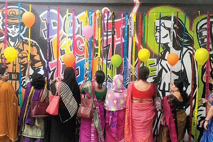ঘরে বাইরে সর্বত্র মহিলা ও শিশুদের প্রতি হেনস্থার নানা চিত্র রোজই সামনে আসছে। তাঁদের সুরক্ষা, অধিকার, প্রতিবাদ করে রুখে দাঁড়ানোর দিশা দেখানোর ভাবনা থেকেই ২৪ বছর আগে জন্ম নেয় ‘স্বয়ম’, বলছিলেন প্রতিষ্ঠাতা কর্ণধার অনুরাধা কপূর। লা মার্টিনিয়ার ফর গার্লস-এর প্রাক্তনী অনুরাধা নারী সুরক্ষার ভাবনায় স্কুলের অধ্যক্ষা রূপকথা সরকারকে প্রস্তাব দেন যৌথ ভাবে কিছু করার জন্য। আজকের ছাত্রীরা আগামীতে নানা পরিস্থিতির শিকার হতে পারে, তাই তাদের জানা উচিত কী ভাবে নিজেরাই নিজেদের সুরক্ষিত করবে। এই ভাবনার প্রেক্ষিতে অধ্যক্ষা মত দিতেই হেনস্থার শিকার দু’শো জন মহিলাকে নিয়ে ছ’টি এবং স্কুলের অষ্টম-দ্বাদশ শ্রেণির ৩০ জন ছাত্রীকে নিয়ে একটি কর্মশালা হয়। সিদ্ধান্ত, স্কুলের বাইরের দেওয়ালে নানা চিত্রমালার মাধ্যমে সচেতনতার পাঠ দেওয়া হবে। সুমন্ত মুখোপাধ্যায়, রিমেল বারগী, অনুপ প্রামাণিক এই শিল্পী ত্রয়ীর সঙ্গে স্কুলের ছাত্রীরা সমান তালে সহযোগিতায় তিন সপ্তাহে ১৬০ ফুট দেওয়ালের প্রায় সিংহভাগ জুড়ে ফুটিয়ে তুললেন দেওয়ালচিত্র (সঙ্গের ছবি)। ২৫ নভেম্বর ‘ইন্টারন্যাশনাল ডে এগেনস্ট ভায়োলেন্স অন উইমেন’ উপলক্ষে স্কুলে আয়োজিত অনুষ্ঠানে দেওয়ালচিত্রটির আনুষ্ঠানিক উন্মোচন হল। বিশেষ অতিথি ছিলেন উষা উত্থুপ। ১০ ডিসেম্বর মানবাধিকার দিবস পর্যন্ত রয়েছে স্বয়মের হরেক কর্মকাণ্ড।