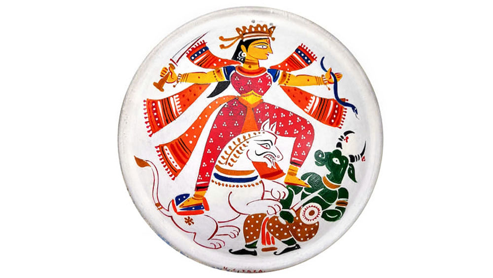 লকডাউনে শহরের আর্ট গ্যালারি বন্ধ ছিল, প্রদর্শনী হয়েছে অনলাইন। আনলক-পর্বে বাস্তবে পা, দক্ষিণ কলকাতার ‘দেবভাষা বই ও শিল্পের আবাস’-এ প্রদর্শনী চলছে মধ্য-সেপ্টেম্বর থেকে। গৌরী ধর্মপাল কক্ষে চন্দনা হোরের ছবির প্রদর্শনী বার্নিং ইন সলিচিউড, মণীন্দ্র গুপ্ত কক্ষে পার্থপ্রতিম গায়েনের ভাস্কর্যে দশভুজার রূপ, শেখর রায়ের আঁকা নিসর্গচিত্র। এ মাসে তুষার চৌধুরী কক্ষে বিমল কুণ্ডুর লক্ষ্মীশ্রী— ছবি ও ভাস্কর্যে পেঁচা, সম্প্রতি হল শুভাপ্রসন্নের পোস্টকার্ডে আঁকা ছবির প্রদর্শনী ‘স্মৃতির কলেজ স্ট্রিট’। শারদোৎসব উপলক্ষে ১৬ অক্টোবর থেকে চলছে ১৪ জন শিল্পীর সরাচিত্র প্রদর্শনী। সরাচিত্রে ফুটে ওঠে বাংলার লোকায়ত সংস্কৃতি, শিল্পীদের রঙে-রেখায় সেই ঐতিহ্যেরই আরাধনা। প্রদর্শনী ৩০ অক্টোবর পর্যন্ত (২৪-২৬ অক্টোবর বাদে), দুপুর ৩টে থেকে রাত সাড়ে ৮টা। ছবি ই-প্রচারপত্র থেকে।