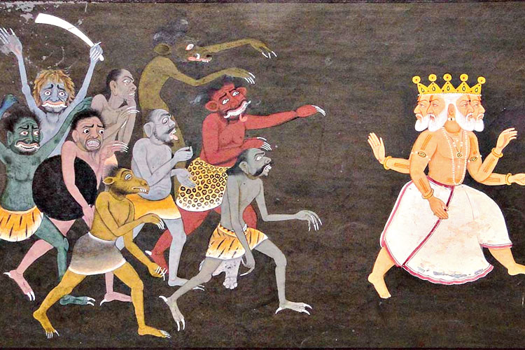 দেবতা এবং অসুরদের চির-যুযুধান দুই সম্পূর্ণ বিপরীত মেরুর অধিবাসী বলেই মনে হয়। কিন্তু সত্যিই কি বিষয়টি এতটা সুনির্দিষ্ট? দেবতা ও অসুররা তো একই উৎস থেকে সৃষ্ট, চারিত্রিক দোষগুণও তাঁদের অনেক ক্ষেত্রেই এক রকম। তবে এটা পূর্বনির্ধারিত যে দেবতারা ‘ন্যায়’-এর পক্ষে, আর অসুররা ‘অন্যায়’-এর। তাই জয় হবে ন্যায়েরই। কিন্তু বৈদিক যুগ থেকে মহাকাব্যের যুগ হয়ে পৌরাণিক যুগে পৌঁছে দেখতে পাই, যে পদ্ধতিতে দেবতাদের জয় অর্জিত হচ্ছে, তা ক্রমশই হয়ে উঠছে নীতিবিবর্জিত। ভারতীয় চিত্রকলাতেও এর প্রতিফলন ব্যাপক। আজ, ৫ অগস্ট বিকেল সাড়ে ৫টায় ভিক্টোরিয়া মেমোরিয়ালের সম্মেলন কক্ষে এই নিয়ে বলবেন প্রবীণ শিল্প-ইতিহাসবিদ বি এন গোস্বামী। নীচের ছবিতে দেবাসুরের যুদ্ধদৃশ্য।