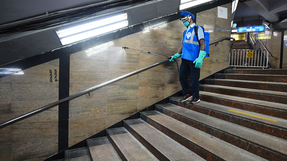 স্টেশনে কর্মী ও আধিকারিকদের সুরক্ষার জন্য মাস্ক, গ্লাভস, ফেস শিল্ডের পাশাপাশি স্যানিটাইজ়ারও দেওয়া হয়। প্রতি ঘণ্টায় কর্মীদের দেখা গিয়েছে যন্ত্রের সাহায্যে স্টেশন এবং প্ল্যাটফর্ম স্যানিটাইজ় করতে। এসক্যালেটরের হাতল, লিফটের বোতাম-সহ যে সব জায়গায় যাত্রীদের হাত পড়ে, সে সবও ঘন ঘন স্যানিটাইজ় করছিলেন সাফাইকর্মীরা।