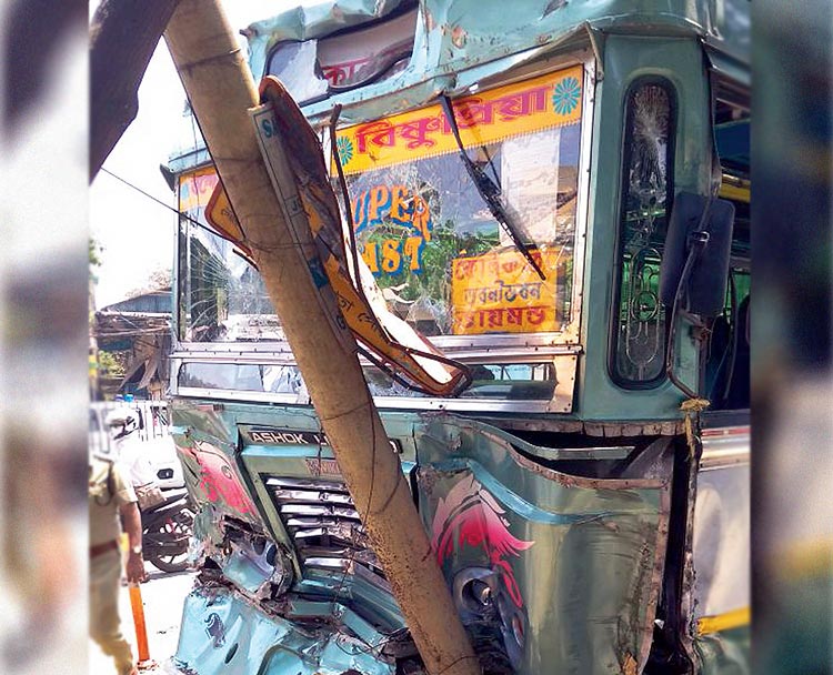দুর্ঘটনার পরে সেই বাস। বৃহস্পতিবার। নিজস্ব চিত্র