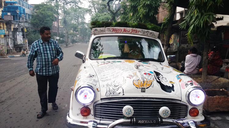 নিউ মার্কেট চত্বরে ‘পিকু’ ছবির শুটিং করছিলেন সিনিয়র বচ্চন। হঠাৎই তাঁর চোখ যায় উদ্ভট একটা ট্যাক্সির দিকে। আর চোখ যে যাওয়ারই কথা। গোটা কলকাতার মানুষ হাঁ হয়ে তাকিয়ে থাকেন ট্যাক্সিটির দিকে। সে ট্যাক্সির মাথায় আস্ত একটা বাগান, ভিতরেও টবের ভিতর রাখা সার দিয়ে নানান প্রজাতির গাছ। আর গোটা ট্যাক্সিটাই সাজানো চোখধাঁধানো সব কার্টুন দিয়ে। এমন ট্যাক্সি দেখে আত্মবিহ্বল হয়ে টুইটারেও দু-চার কলি লিখে ফেলেছিলেন বিগ বি।