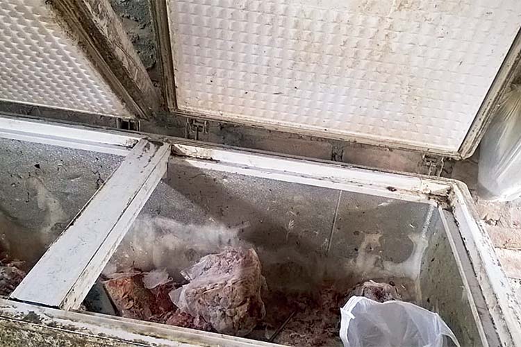 ফ্রিজারে সংরক্ষিত মাংসও পচাগলা। শুক্রবার, নিউ টাউনে।