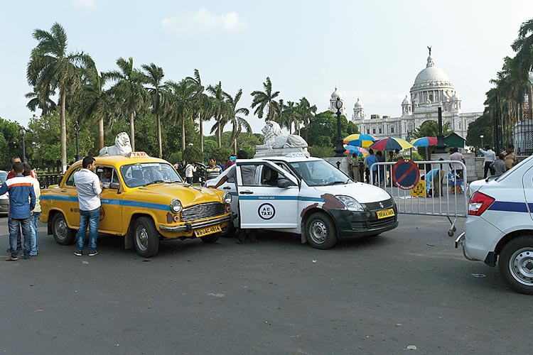 স্থান, ভিক্টোরিয়া মেমোরিয়ালের প্রধান গেট। সময়, বুধবার বিকেল সাড়ে চারটে। ভিক্টোরিয়ার গেটের সামনে বড় বড় করে লেখা রয়েছে ‘নো পার্কিং’। কিন্তু নিষেধাজ্ঞার তোয়াক্কা না করেই সেখানে সার বেঁধে দাঁড়িয়ে রয়েছে হলুদ ট্যাক্সি, অ্যাপ ক্যাব এবং এসি ট্যাক্সি। আর সেই ট্যাক্সিগুলোকে লাঠি উঁচিয়ে সামলাচ্ছেন স্থানীয় এক যুবক। ট্র্যাফিক পুলিশেরা যেমন লাঠি ব্যবহার করেন, ওই যুবকের হাতে রয়েছে তেমনই একটি লাঠি।