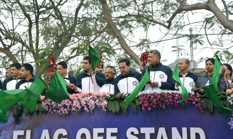 রেড রোডে সবুজ পতাকা দেখিয়ে এই দৌড়ের সূচনা করেন ন্যাশনাল ইনসিওরেন্স-এর সিএমডি সনৎ কুমার। অনুষ্ঠানমঞ্চে হাজির ছিলেন সংস্থার বেশ কয়েক জন শীর্ষ কর্তা-সহ কলকাতার পুলিশ কমিশনার রাজীব কুমার।