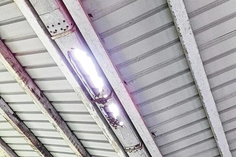 রেলস্টেশনের ছাউনির এমন ফুটো দিয়েই ঢুকছে জল।