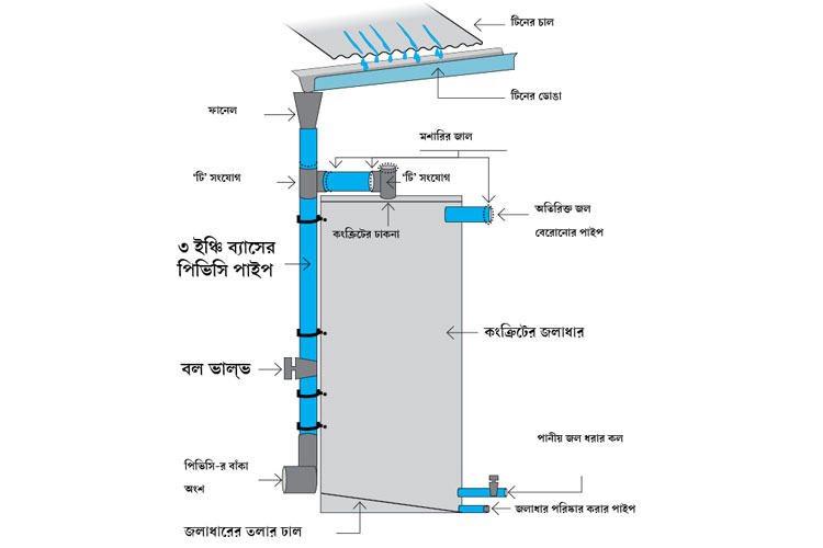 সংরক্ষণ: বসু বিজ্ঞান মন্দিরের তৈরি বৃষ্টির জল রাখার আধারের নকশা।
