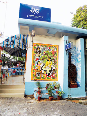 চৌকাঠে দাঁড়িয়ে কি বইয়ের অন্দরের খবর মেলে? বই-বিপণির ভেতরে ঢুকে ঘেঁটেঘুঁটে না দেখতে পারলে মন ভরে না, বিক্রির সম্ভাবনাও কমে। পশ্চিমবঙ্গ বাংলা আকাদেমি কর্তৃপক্ষ এ বার সে কথা ভেবেই বোধহয় তাঁদের প্রাঙ্গণের বইঘরকে নতুন জীবন দান করেছেন। সেখানে হাজির হলেই চোখে পড়বে বই কিংবা পাঠাগার নিয়ে পিংলার দুখুশ্যাম চিত্রকরের পট অবলম্বনে দেয়ালচিত্র আর আধুনিক স্থাপনশিল্প। বইয়ের উপর ২০ শতাংশ ছাড় তো আছেই। বাংলা আকাদেমি ছাড়াও পশ্চিমবঙ্গ সরকারের বিভিন্ন আকাদেমি ও পর্ষদ-এর বই রয়েছে বাতানুকূল কক্ষে। ইতিমধ্যেই বিপণন বৃদ্ধি পেয়েছে দারুণ গতিতে। যে কোনও কাজের দিন ১২-৭টা খোলা।