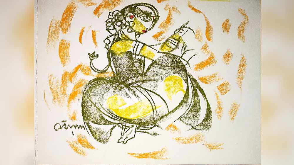 চার বছর আগে, ১৪২৪ বঙ্গাব্দের বৈশাখ-শুরুর দিনটিতে পথ চলা শুরু ‘দেবভাষা’র। দেখতে দেখতে চার বছর পেরিয়ে এসেছে দক্ষিণ কলকাতার এই বই ও শিল্পের আবাস। সময়ের নিরিখে নবীন, যদিও তার প্রকাশনার বয়স পেরিয়েছে এক দশক। ২০১১ সালের জানুয়ারিতে কবি তুষার চৌধুরীর কবিতাবই প্রকাশের মধ্য দিয়ে প্রকাশনায় হাতেখড়ি, গত এক দশকে চিত্রকলা থেকে কবিতা, শিল্পতত্ত্ব থেকে স্মৃতিকথা-আত্মকথা, নানা বিষয় ও আঙ্গিক উঠে এসেছে দেবভাষা প্রকাশিত বইয়ে। বই আর শিল্প-প্রদর্শনী হাত ধরাধরি করে থাকে দেবভাষা-র ভাবনায়, নতুন বছরে নানাবিধ বই প্রকাশের পরিকল্পনার পাশাপাশি নববর্ষের সন্ধেয় শুরু হয়েছে ‘দেবভাষার জন্মদিনের চিত্রপ্রদর্শনী’। দেখা যাবে সোমনাথ হোর, রেবা হোর, বি আর পানেসর, যোগেন চৌধুরী, সনৎ কর, গণেশ হালুই, রামানন্দ বন্দ্যোপাধ্যায় (ছবিতে শিল্পীর একটি চিত্রকৃতি), বিমল কুণ্ডু, সুশোভন অধিকারী-সহ প্রবীণ-নবীন শিল্পীদের বিভিন্ন মাধ্যমে আঁকা ছবি। প্রদর্শনী ২৯ এপ্রিল পর্যন্ত, মঙ্গলবার বাদে রোজ দুপুর আড়াইটে থেকে রাত সাড়ে ৮টা, কোভিড-বিধি মেনে।