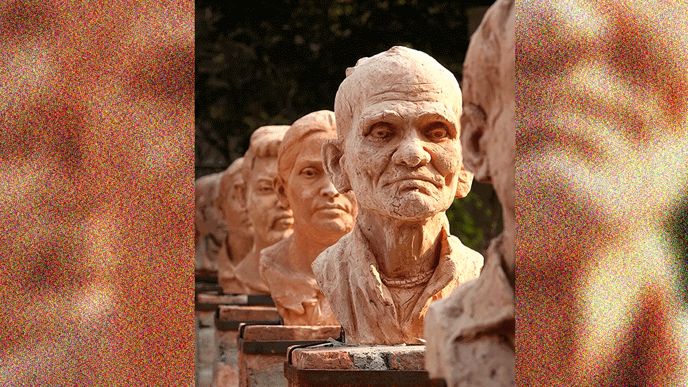 একুশ বছরের নিরন্তর শিল্প যাপনের উদ্‌যাপন। ভবতোষ সুতারের শিল্পপথের আখ্যান ও অভিযাত্রা — অনাথাশ্রমের শৈশব থেকে শুরু করে মধ্যযৌবনে শিল্পাশ্রম ‘চাঁদের হাট’-এর গড়ে ওঠার কাহিনি। এই সবই ধরা মূর্তিতে, ভিডিয়োয়, ইনস্টলেশন ও স্থাপত্যে (সঙ্গের ছবিতে একটি)— সরশুনা ক্ষুদিরাম পল্লির ‘চাঁদের হাট’-এ ‘উদ্‌যাপন’ নামের প্রদর্শনীতে, গত ২৭ মার্চ থেকে। ভবতোষের পরিচিতি বহুলাংশে কলকাতার দুর্গাপুজোর শিল্পী হিসাবে, গত দুই দশকেরও বেশি সময় শহরের দুর্গাপুজোর শিল্প-পরিসরকে সতত ভাঙা, গড়া, প্রশ্ন করা, উত্তর খোঁজার মধ্য দিয়ে চলেছে তাঁর যাত্রা। সেই নির্মাণ-প্রক্রিয়ার চাক্ষুষ বিবৃতি এই প্রদর্শনী। শুরুর দিন মাঠে ঘাটে শিল্প নামে একটি বইয়েরও উদ্বোধন হল এখানে, শহরের পূর্বপ্রান্তিক ‘অর্জুনপুর আমরা সবাই’ ক্লাবের পরিবেশনায়, শিল্পীর গত বছরের দুর্গাপুজোর শিল্পকৃতি নিয়ে— মুখবন্ধ তপতী গুহঠাকুরতার। প্রদর্শনী চলবে ১০ এপ্রিল পর্যন্ত, রোজ দুপুর ৩টে থেকে রাত ৮টা। প্রকাশিত বইটির বিশদ তথ্য শিল্পীর ওয়েবসাইটে।