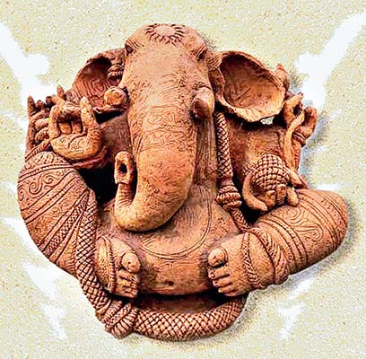 টেরাকোটা বা মাটির কাজ দিয়েও যে গল্পের বইয়ের ইলাস্ট্রেশন করা যায় সেটি করে দেখিয়েছেন তিনি! দেশবাড়ি মেদিনীপুরে থাকবার সময় থেকেই মাটির সঙ্গে সখ্যতা শিল্পী রামকুমার মান্নার। অতএব মাটিতেই ওঁর নানাবিধ গল্প বলা। সেই গল্পের তাগিদেই শিল্পী ফিরে যান মা-ঠাকুমার গল্পের ঝুলিতে। যেখানে থাকে লোকআঙ্গিকের টান, থাকে পৌরাণিক চরিত্ররা। শিল্পী মনে করেন, ‘ক্রমেই তো আমাদের জীবন থেকে হারিয়ে যাচ্ছে এই সব, সেই কারণেই চেষ্টা একটু কিছু ধরে রাখবার।‘ এই তাগিদ থেকেই শুরু করেছিলেন পুরাণ বা লোককথা নিয়ে কাজ। শিল্পীর সাম্প্রতিক এই সমস্ত কাজ নিয়েই ১৯ মে বিকেল ৫ টায় ‘মিথোলজি রিক্রিয়েটেড’ শীর্ষক এই প্রদর্শনীটি শুরু হচ্ছে পঙ্কজ মল্লিক সরণি-র শ্রী আর্ট গ্যালারিতে, উদ্বোধন করবেন হোপ ফাউন্ডেশন ইন্ডিয়া-র সিইও সুজাতা সেন। ২ জুন পর্যন্ত, ৩-৭ টা। সঙ্গের ছবি প্রদর্শনী থেকে।