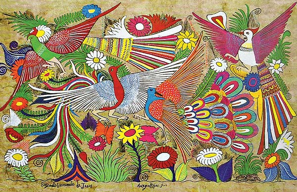 মেক্সিকোয় এক বিশেষ গাছের ছাল থেকে বানানো কাগজই আসলে ‘আমাতে’, যা প্রাথমিক ভাবে ব্যবহৃত হত পুথি তৈরিতে। স্পেনীয় বিজয়ের পর আমাতে তৈরি নিষিদ্ধ করে দেওয়া হয়, আমদানি শুরু হয় ইউরোপের কাগজ। কিন্তু আমাতে তৈরি কখনওই পুরো বন্ধ হয়নি, বিশেষ করে তা থেকে গিয়েছিল ‘জাদু-পুরোহিত’দের মধ্যে। এখন ওতোমি জনজাতির মানুষ বাণিজ্যিক ভাবে আমাতে তৈরি করেন, আর নাহুয়া শিল্পীরা উজ্জ্বল রঙের ব্যবহারে তা থেকে সৃষ্টি করেন জনপ্রিয় শিল্পকর্ম। মেক্সিকো সরকারও এই নতুন লোকশিল্পটির প্রচারে উদ্যোগী। এ বার দিল্লির মেক্সিকান দূতাবাস ও আইসিসিআর-এর যৌথ প্রয়াসে এই হস্তশিল্পের প্রদর্শনী ‘আমাতেস’ শুরু হয়েছে আইসিসিআর-এর অবনীন্দ্রনাথ ঠাকুর প্রদর্শকক্ষে। চলবে ১৪ সেপ্টেম্বর পর্যন্ত, রোজ ৩-৭টা। সঙ্গে তারই ছবি।