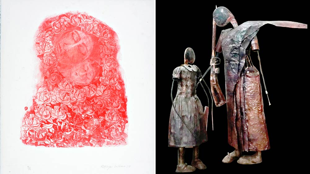 চিত্রশিল্পী রোকেয়া সুলতানার সঙ্গে এই বাংলার সম্পর্ক নিবিড়, গভীর। বিশ্বভারতীর কলাভবনের প্রাক্তনী, শিল্পের পাঠ পেয়েছেন সোমনাথ হোর, লালুপ্রসাদ সাউ, সনৎ করের কাছে। প্রায় তিন দশক শিল্পসৃষ্টিতে মগ্ন, পরিচিত আন্তর্জাতিক অঙ্গনে, বর্তমানে ঢাকা বিশ্ববিদ্যালয়ের ছাপচিত্র বিভাগের অধ্যাপক। কাজ করেছেন টেম্পারা, জলরং, তেলরং, মিশ্র মাধ্যমেও। তাঁর ছবিতে নারী, মাতৃত্ব ও নিসর্গ স্বকীয়তায় ভাস্বর, মূল সুরটি শিল্পিত অন্তর্মুখিতা; মুক্তিযুদ্ধ ও বাংলাদেশের স্বাধীনতা-প্রাণিত তাঁর চিত্রকৃতি যেন ইতিহাসের সময়ছবি। তাঁর সমগ্র শিল্পজীবনের বাছাই কাজ নিয়ে প্রদর্শনী চলছে আইসিসিআর-এর নন্দলাল বসু ও যামিনী রায় গ্যালারিতে, গত ৭ জুলাই উদ্বোধন করলেন যোগেন চৌধুরী। হল গ্রন্থপ্রকাশও। আইসিসিআর ও বেঙ্গল ফাউন্ডেশন আয়োজিত এই প্রদর্শনী চলবে ২০ জুলাই পর্যন্ত, রোজ সকাল ১১টা থেকে রাত ৮টা। ছবিতে দু’টি চিত্রকৃতি, উইমেন অব ওয়ার: ১৯৭১ (বাঁ দিকে) এবং পাউচ অব মাদারস।