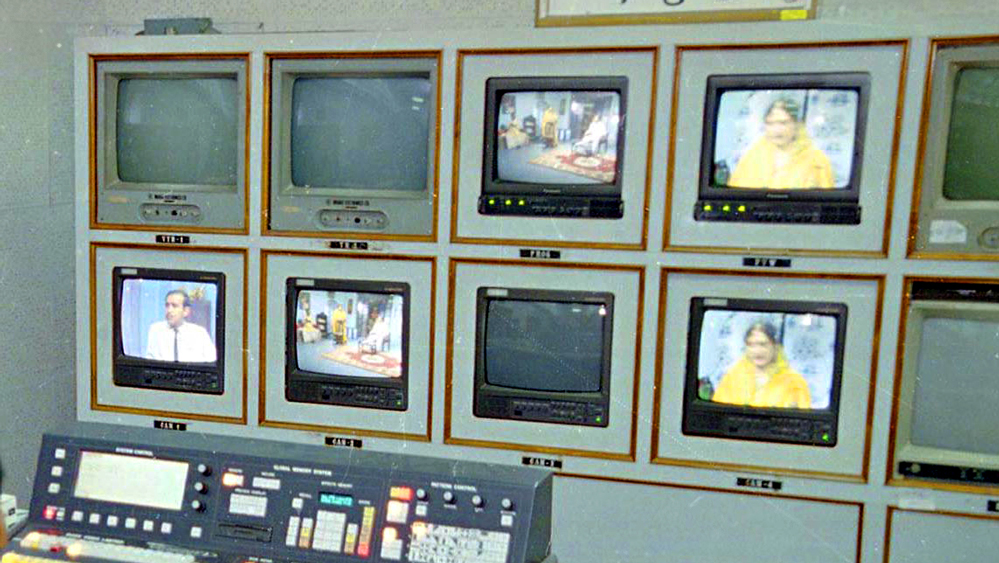 গল্ফ গ্রিনের দূরদর্শন ভবন তো এল পরে (ছবিতে সেখানকার এডিটিং রুম)। শুরুর দিনগুলোয় রাধা ফিল্ম স্টুডিয়োয় নামমাত্র পরিকাঠামো, তার মধ্যেই অনুষ্ঠান রেকর্ড করে ক্যানবন্দি করা। ৯ অগস্ট উদ্বোধনের পরের দিনই প্রবল ঝড়বৃষ্টি, সম্প্রচার হল না। কর্মীদের কারিগরি জ্ঞান সীমিত, অনুষ্ঠানের মডেলও যে জানা তা-ও নয়। শুরু থেকেই কলকাতা দূরদর্শন স্বশিক্ষিত। সে গড়েপিটে নিয়েছিল নিজের ভাষা, নিজস্ব আঙ্গিক। তাকে কাঁধ দিয়েছে কলকাতার সারস্বত বৃত্ত। তার ‘দূরদর্শন’ নামে আচার্য সুনীতিকুমার চট্টোপাধ্যায়ের সিলমোহর, ‘সংযোজনা’ শব্দে শঙ্খ ঘোষের সমর্থন। রোজ সন্ধেয় মোটে দু’ঘণ্টার অনুষ্ঠান, কিন্তু এই শহর খুব তাড়াতাড়ি আপন করে নিয়েছিল কলকাতা দূরদর্শনকে। কত অনুষ্ঠান— ‘দর্শকের দরবারে’, ‘সাহিত্য সংস্কৃতি’, ‘বিজ্ঞান জিজ্ঞাসা’, ‘কোয়েস্ট’, ‘সুস্বাস্থ্য’, ‘শিল্পজগৎ’, ‘ঘরে বাইরে’, ‘একটু ভেবে দেখুন’, ‘চিচিং ফাঁক’, ‘হরেকরকমবা’। শুরু থেকেই জোর ছিল বিজ্ঞানমনস্কতায়। খুব জনপ্রিয় হয়েছিল ‘নববর্ষের বৈঠক’ আর বাংলা ছবি। আজ জনতার মাঝে বা নিয়ন্ত্রিত আউটডোরে টিভি-অনুষ্ঠান দেখে মনে হয় এ তো খুব স্বাভাবিক, এই সবই কলকাতা দূরদর্শনের শুরু।