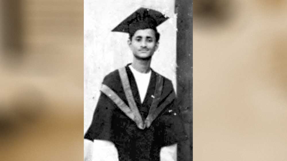 ‘রবীন্দ্রাচ্ছন্ন’ সন্তোষকুমার ঘোষকে (১৯২০-১৯৮৫) কণিকা বন্দ্যোপাধ্যায় দেখেছেন ‘জননান্তর সৌহৃদানি’র স্পষ্টতায়। আবার মেয়ের বিয়েতে প্রিয় বন্ধু হেমন্ত মুখোপাধ্যায়কে নিমন্ত্রণ করতে ভুলে গেছেন সন্তোষকুমার, ঘটেছে এমনও। ঘটনাচক্রে তাঁর বাড়ি এসে হেমন্তবাবু দেখেন, বিয়ের ম্যারাপ বাঁধা! এমনই সব ঘটনা ও স্মৃতিচিত্রে ভরা সন্তোষকুমার ঘোষ: জন্মশতবর্ষ স্মারক গ্রন্থ (সম্পাদনা: শুভাশিস চক্রবর্তী)। সুভাষ মুখোপাধ্যায়, নীরেন্দ্রনাথ চক্রবর্তী, তপন সিংহ, অম্লান দত্ত, সমরেশ বসুর স্মৃতিকথা, শক্তি চট্টোপাধ্যায়ের কবিতা, অপ্রকাশিত কার্টুন ও দুষ্প্রাপ্য আলোকচিত্র, সটীক চিঠিপত্র, অলঙ্করণ-গুচ্ছ, গ্রন্থপঞ্জি, পাণ্ডুলিপির মুদ্রণে অনন্য উড়োপত্র প্রকাশনার এই বই। আছেন ‘কবি সন্তোষকুমার’ও। প্রয়াণদিনে ২৬ ফেব্রুয়ারি শুক্রবার পশ্চিমবঙ্গ বাংলা আকাদেমি সভাঘরে সন্ধে সাড়ে ৫টায় বইটির প্রকাশ অনুষ্ঠান, অহর্নিশ পত্রিকার উদ্যোগে। ছবিতে স্নাতক ডিগ্রি অর্জনের পর তরুণ সন্তোষকুমার ঘোষ।