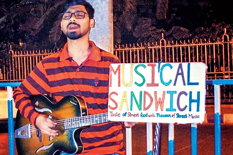 আমরা তো হরঘড়ি ‘স্ট্রিট ফুড’ চাখি। হররোজ স্ট্রিট আর্ট, পথ নাটিকা দেখি। এমনকি মেলার ধারে চাদর বিছিয়ে বাঁশিও শুনি। কিন্তু স্ট্রিট মিউজ়িক? এ বার এই শহরের ফুটপাতে বিদেশের ধাঁচে শোনা যাচ্ছে গিটারের মূর্চ্ছনা, সঙ্গে স্যান্ডউইচ— যা মন্ত্রমুগ্ধ তো করবেই আপনাকে, হবে রসনাতৃপ্তিও। গোলপার্ক রামকৃষ্ণ মিশনের পাশের ফুটপাত ফি-সন্ধেয় দেখা মেলে শ্যামাপ্রসাদ কলেজের ইংরেজি সাহিত্যের ছাত্র নীলাঞ্জন সাহার ‘মিউজ়িকাল স্যান্ডউইচ’ নামক সাইকেলের ওপর অভিনব খাবারের দোকানের। যাঁরা খেতে আসেন, তাঁদের গিটার বাজিয়ে পুরনো বাংলা গান শোনান তিনি। নীলাঞ্জন বলছিলেন, ‘‘স্ট্রিট মিউজ়িককে জনপ্রিয় করা আমার প্রধান লক্ষ্য তো বটেই, সঙ্গে স্ট্রিট মিউজ়িক হাব তৈরি ও অসংগঠিত দুঃস্থ শিল্পীদের একটি মঞ্চ দেওয়াও উদ্দেশ্য।’’ রোজ সন্ধে সাড়ে ৬টা থেকে রাত ৮টা পর্যন্ত। চাইলে যে কেউ এখানে এসে গান বাজনা শোনাতে পারেন। নীলাঞ্জনের ফেসবুক পেজ: ‘মিউজ়িকাল স্যান্ডউইচ’।