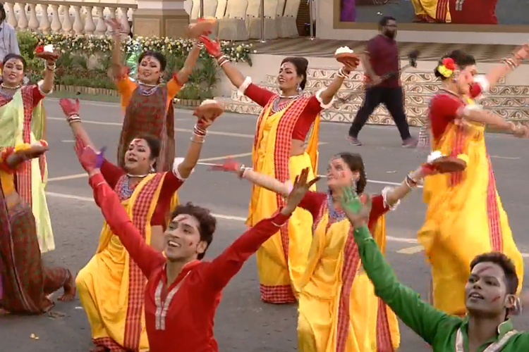• নাকতলা উদয়ন সংঘের শোভাযাত্রায় নৃত্যে অংশ নিলেন ঋতুপর্ণা সেনগুপ্ত।